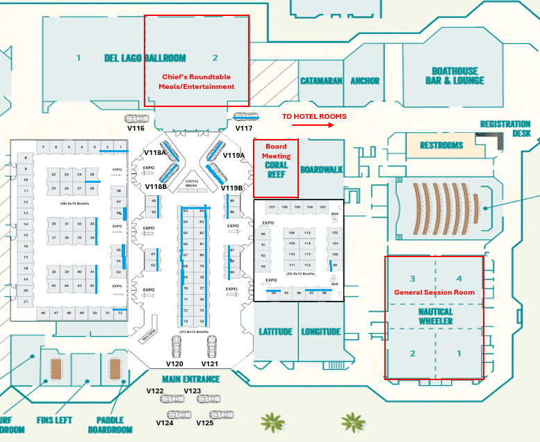 Sold Booths are marked in BLUE. By Friday, February 13, the online booth selection will be available. Available booths will show a SALE Icon in the number.